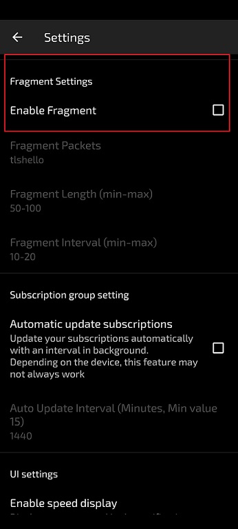 (6) چنانچه قابلیت Fragment در برنامه وی پی ان شما وجود ندارد ابتدا برنامه را آپدیت نمائید و یا اینجا کلیک نموده و سایر برنامه ها را تست نمائید. (برای آیفون از برنامه Streisand استفاده نمائید)